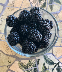 So excited this year about our BLACKBERRY BUSH! It is going OFF right now! I made this the other day and we are enjoying it topped with Tofu-Cashew Whipped Cream! So delicious!